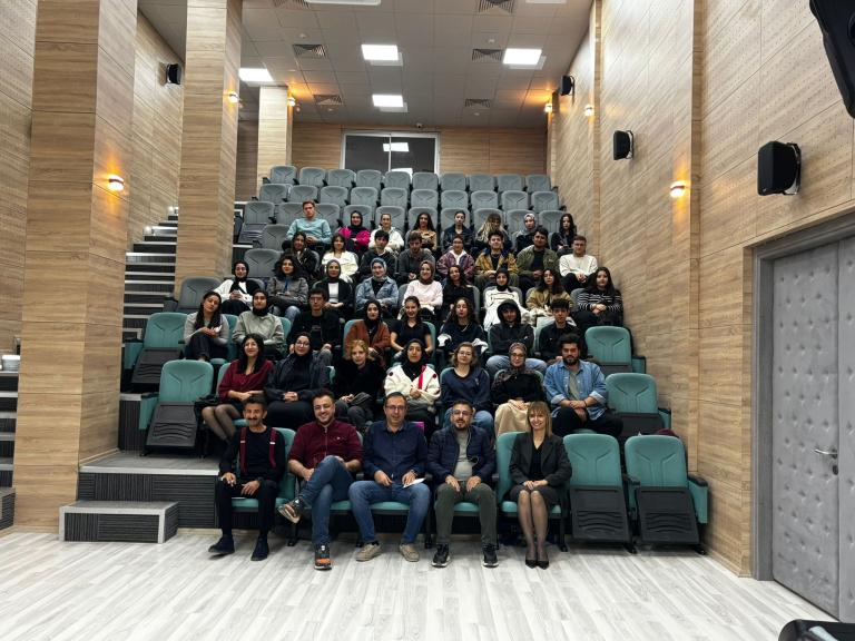 The Visual Communication Design Department held an orientation meeting for first-year students starting the new academic year. The meeting, held in the Kenan Işık Amphitheater, was attended by Department Chair Assoc. Prof. Dr. Emrah Arğın, Assoc. Prof. Dr. Aydın Karabulut, Lecturer Dr. Yasemin Keskin Yılmaz, and Lecturer Dr. Mehmet Ali Gazi.