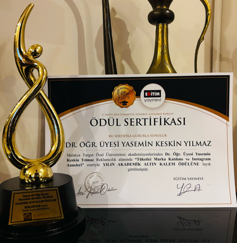 Dr. Öğr. Üyesi Keskin Yılmaz, Eğitim Yayınevi tarafından yayımlanan “Tüketici Marka Katılımı ve Instagram Anneleri” adlı akademik çalışmasıyla dikkat çekerek jüri tarafından ödüle değer bulundu. Reklamcılık ve dijital pazarlama alanında özgün katkılar sunan eseriyle kamuoyunun ve akademik çevrelerin takdirini kazanan Keskin Yılmaz, törende yaptığı konuşmada bilimsel üretimin toplumsal faydaya dönüştürülmesinin önemine vurgu yaparak Malatya Turgut Özal Üniversitesi çatısı altında yürüttüğü akademik çalışmaların bu şekilde tanınmasının kendisini daha da motive ettiğini belirtti.