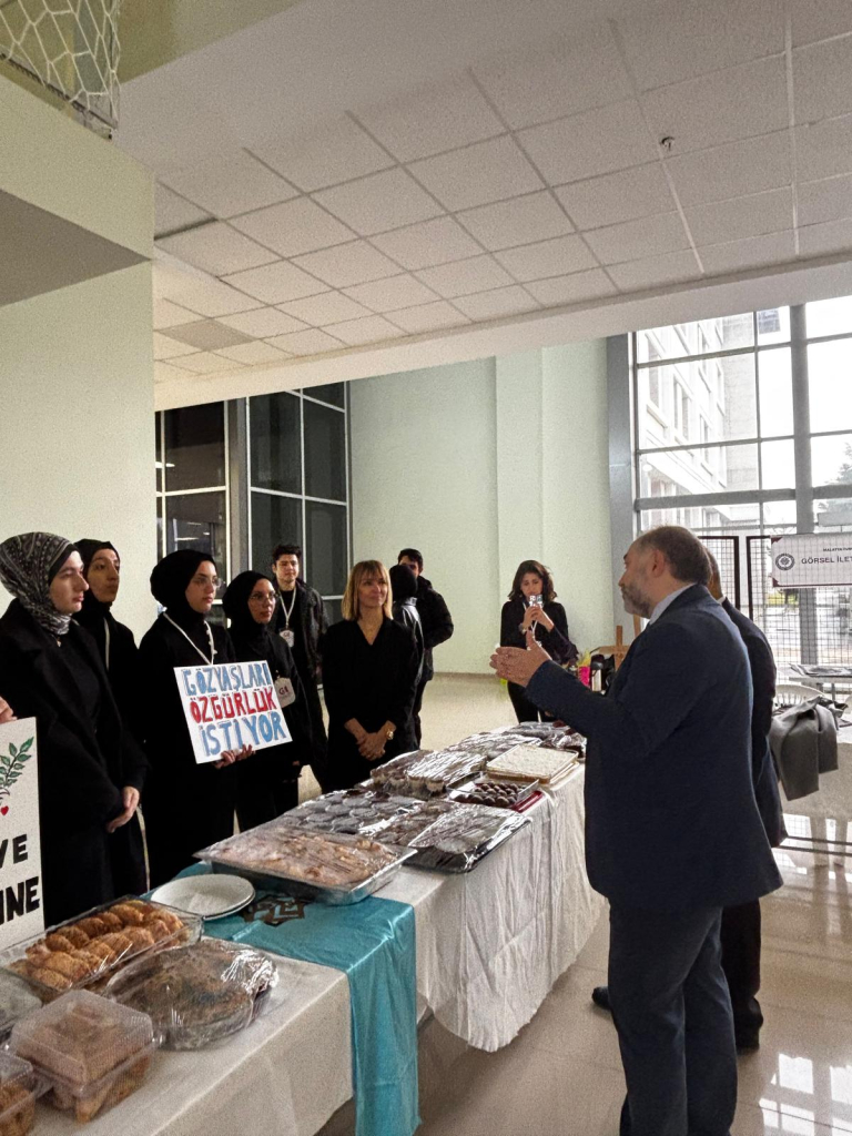 12 Aralık 2025 tarihinde, Battalgazi Yerleşkesi Rektörlük Giriş Katı’nda, Genç Hemşireler Topluluğu öncülüğünde dört öğrenci topluluğunun iş birliğiyle anlamlı bir kermes ve farkındalık etkinliği gerçekleştirildi. Etkinlikte Görsel İletişim Topluluğu, ortaya koyduğu yaratıcı ve sessiz protesto performansıyla dikkat çekti.