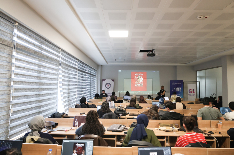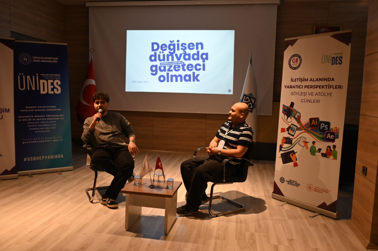 Görsel İletişim Topluluğu tarafından yürütülen “İletişim Alanında Yaratıcı Perspektifler: Söyleşi ve Atölye Günleri” başlıklı 5. ÜNİDES projesi, 2-3 Nisan 2026 tarihlerinde gerçekleştirilen etkinliklerle tamamlandı. Proje kapsamında öğrenciler, grafik tasarım ve dijital habercilik alanlarında sektör temsilcileriyle bir araya gelerek hem kuramsal bilgilerini uygulamayla pekiştirme hem de mesleki deneyim kazanma fırsatı buldu. İki gün süren proje etkinlikleri, öğrencilerin mesleki gelişimlerinin yanı sıra ekip çalışması, organizasyon ve üretim becerilerine de katkı sundu.