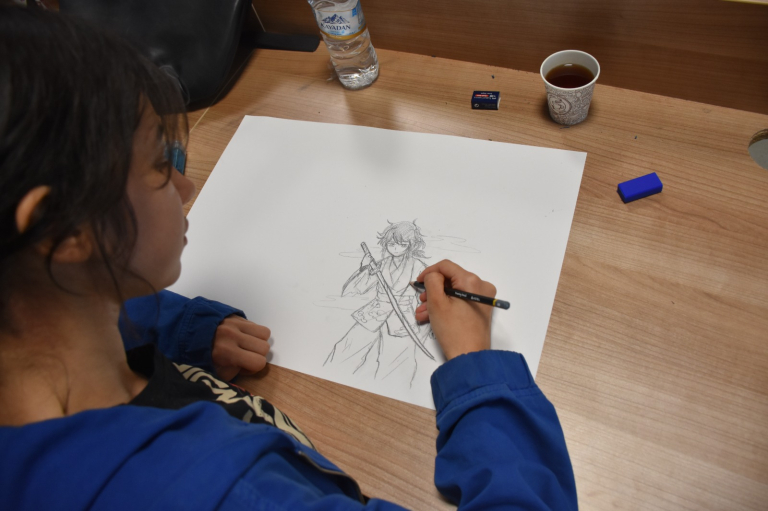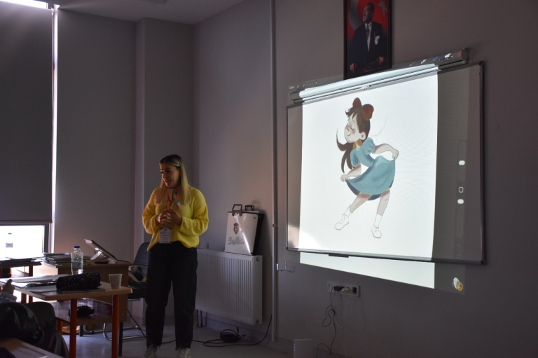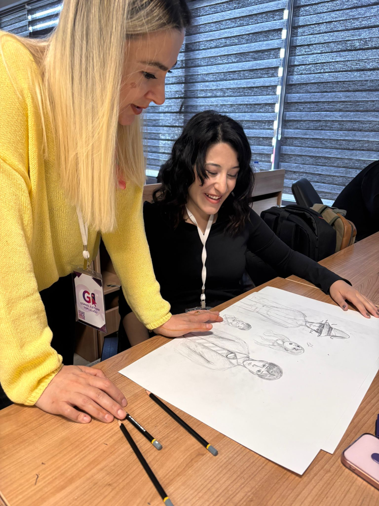 Etkinliğin ikinci gününde ise dijital çizim çalışmalarına geçildi. Öğrenciler, geleneksel çizimden dijital üretim sürecine uzanan aşamaları deneyimleyerek farklı teknikleri uygulama imkânı buldu. Böylece workshop, hem temel çizim pratiğini geliştirmek hem de güncel dijital üretim araçlarını tanımak açısından verimli bir öğrenme ortamı sundu.